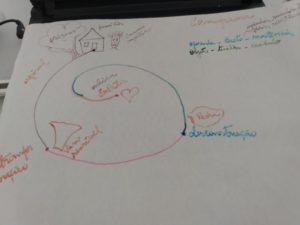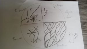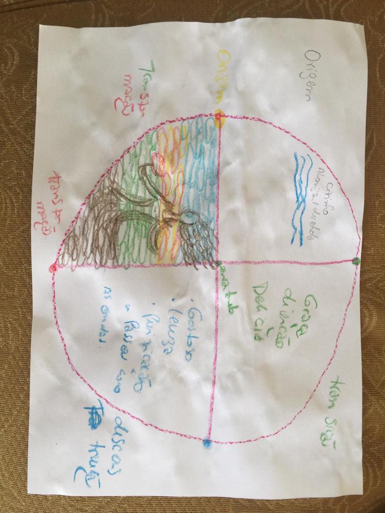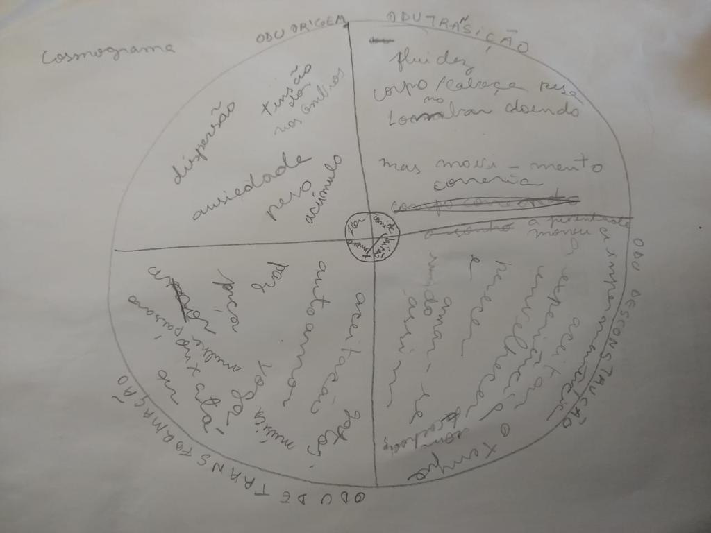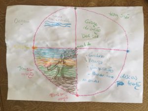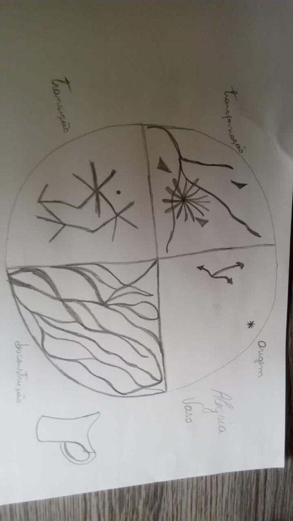 Nosso objeto: a selfie física, digital e emocional. A proposta incluía quatro imagens, uma representando cada Odu de seus próprios cosmogramas criados no dia anterior.